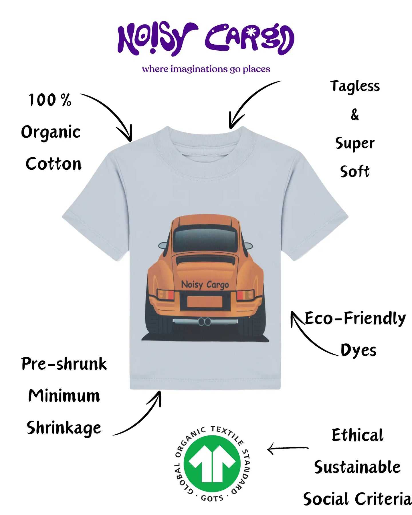 Capture the imagination of young ones interested in cars, racing, and the thrill of speed. Ensure your little racers wear high-quality GOTS certified organic tees that are super soft and comfortable. Perfect for playful kids with fun imaginations. Get one today!